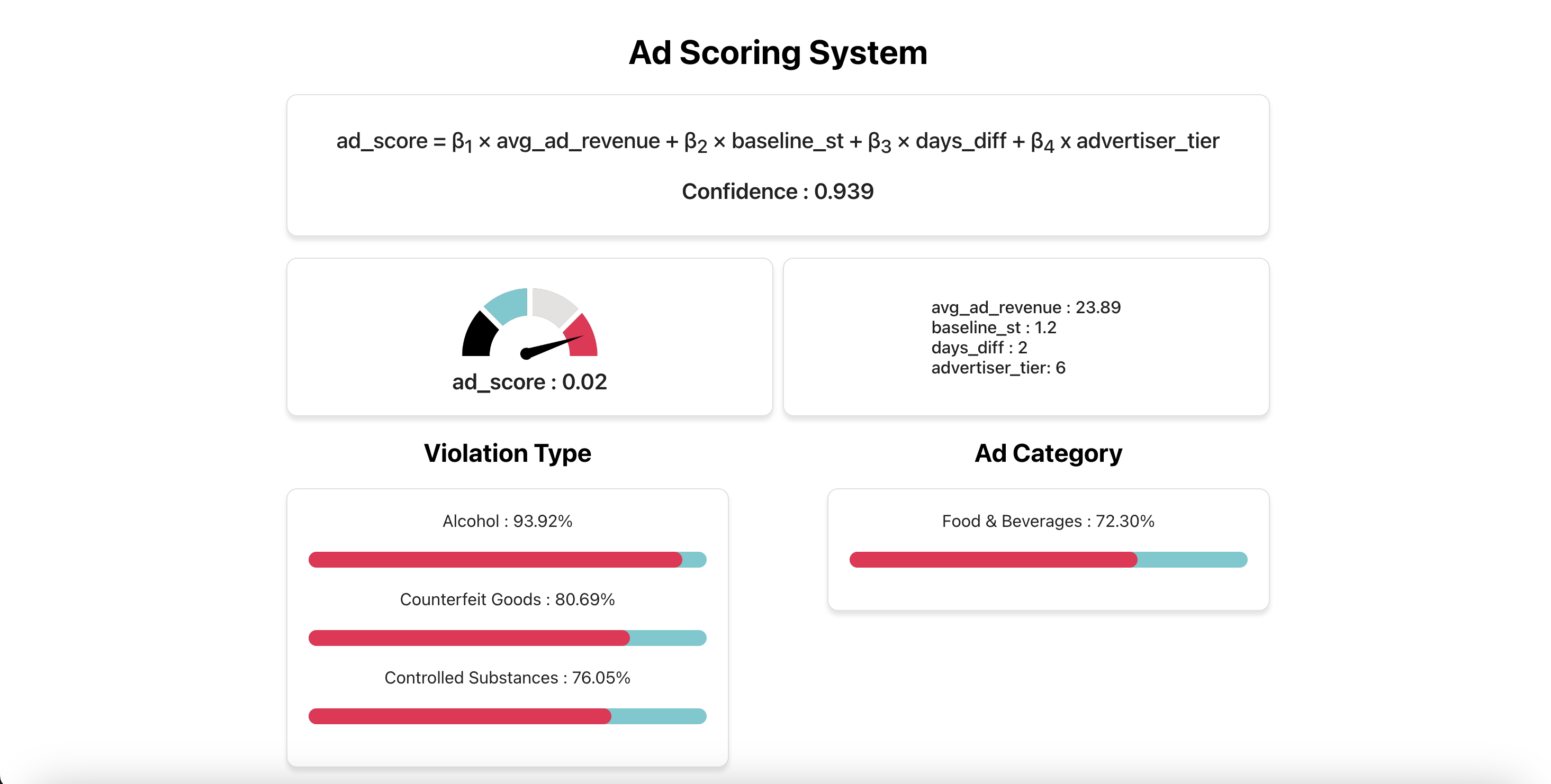 - A full-stack web app (using React and Flask) for ad ingestion and assessment.