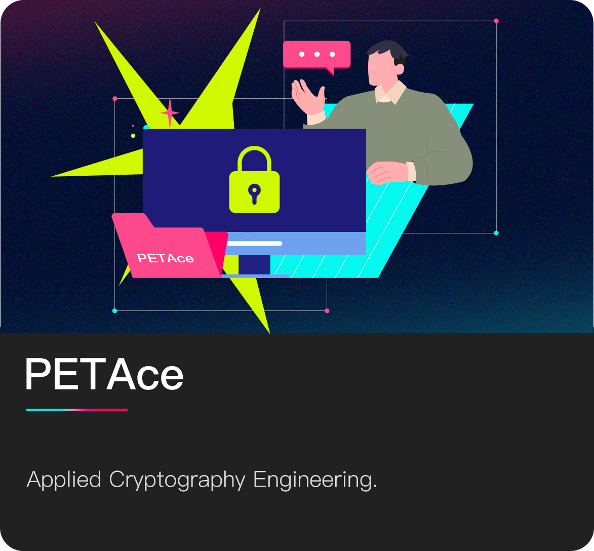 PETAce (Privacy-Enhancing Technologies via Applied Cryptography Engineering) is a privacy-enhancing protocol framework based on state-of-the-art research results. It provides data processing methods such as secret sharing, homomorphic encryption, and oblivious transfer, and can perform collaborative computation and analysis of two-party data while preserving data privacy. For more details, visit PETAce on GitHub.
