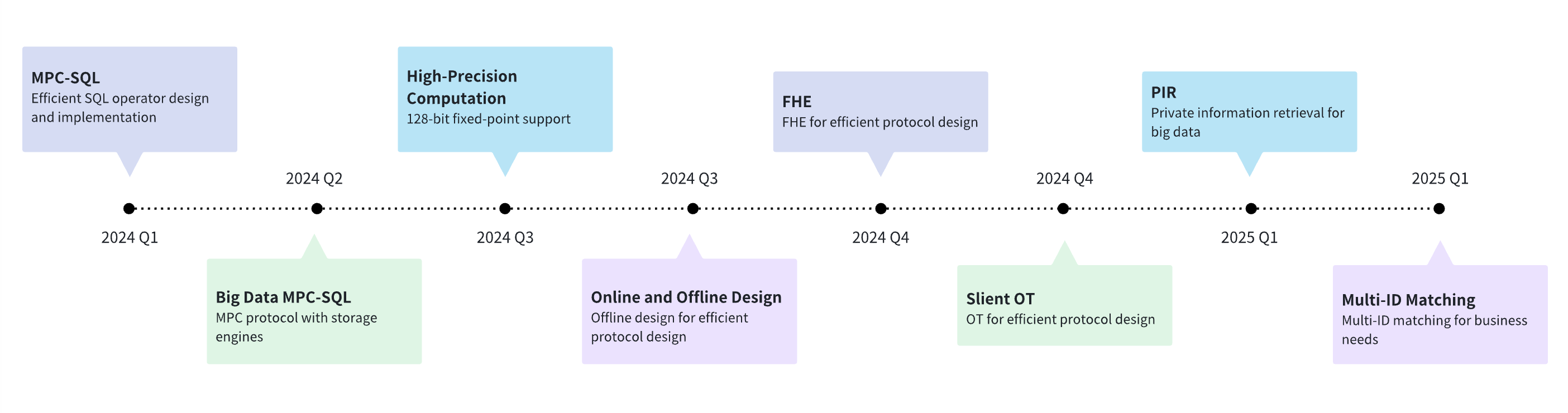 - MPC-based SQL Query — Enhancing support for SQL operators and in-memory computation, enabling joint query tasks with substantial datasets.