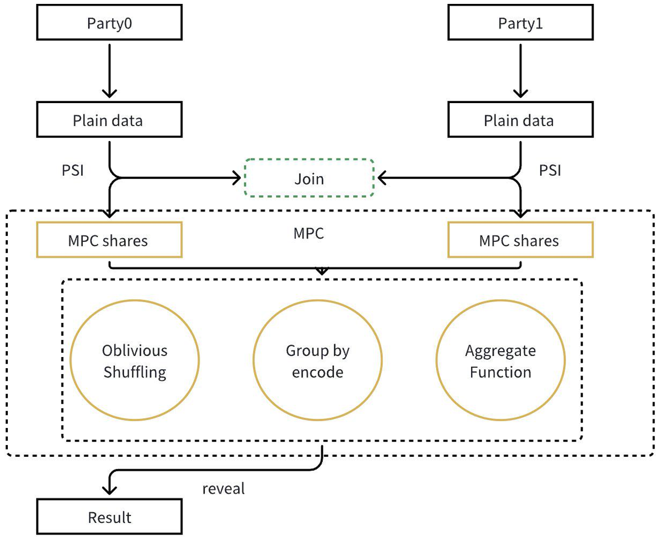 - Provide different types of PSI, such as circuit-PSI, KKRT-PSI, and ECDH-PSI, to ensure the efficiency and security of join operations.