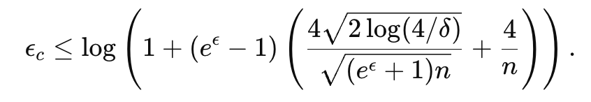 On the other hand, the shuffling process further amplifies the above LDP guarantee and achieves a (ϵc,δ)-DP guarantee with