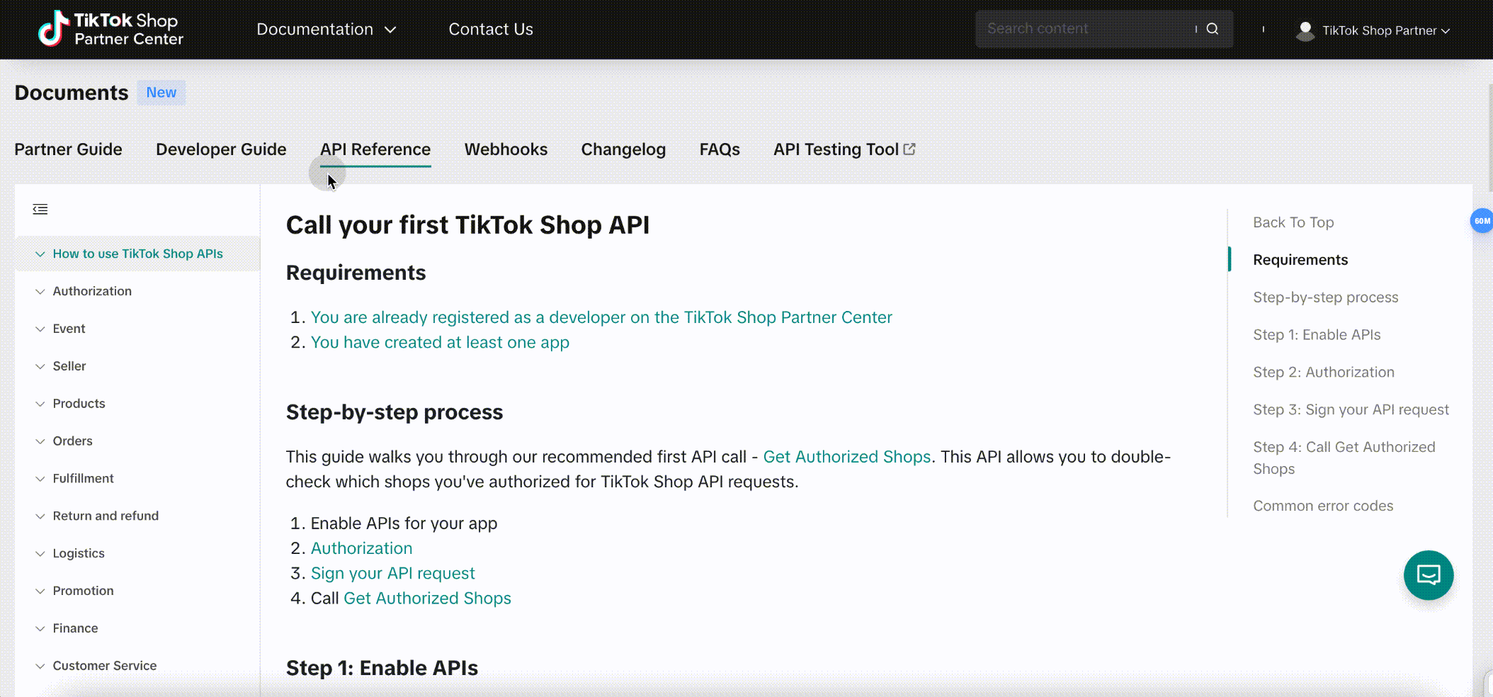 Based on developer feedback, the TikTok Shop team has refreshed the guide to help developers with their most common pain points around authorization, signature algorithms, and more. We've also added step-by-step instructions on how to call the first API and attached a glossary of common error codes to get an API call faster.