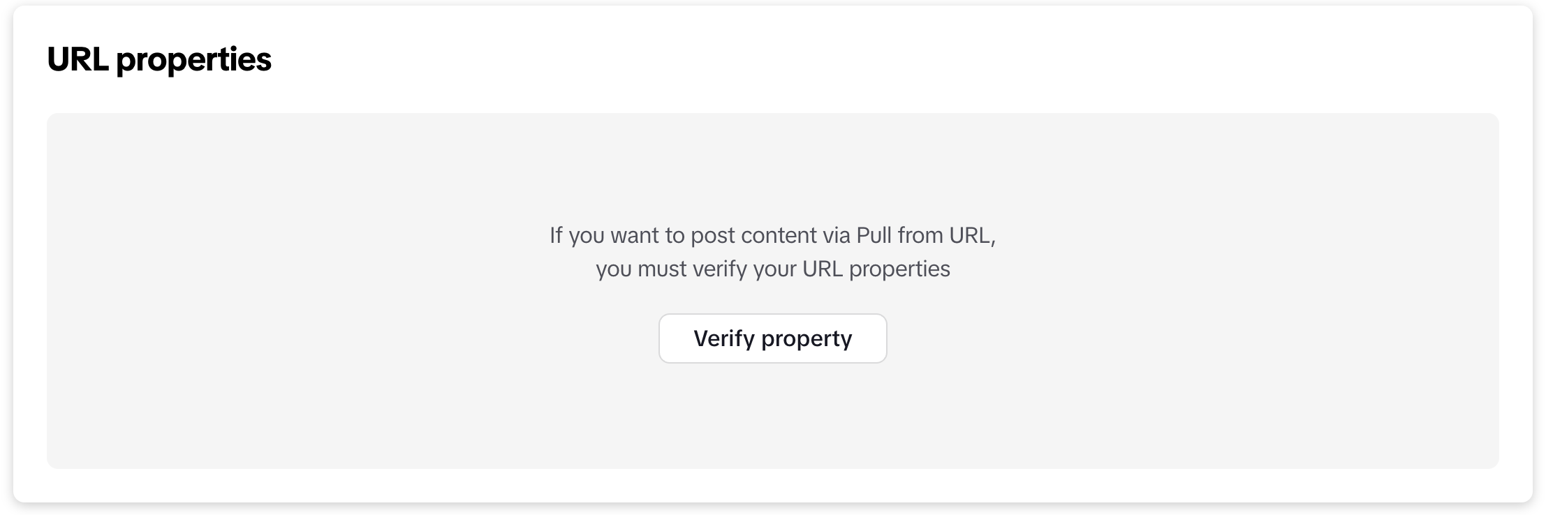 - Ensure that the media URL you provided belongs to a path that you own. To confirm ownership, log into the TikTok for Developers website and add your Domain or URL Prefix property to your application in the URL properties widget as shown below. You must have manage or write access to the property.