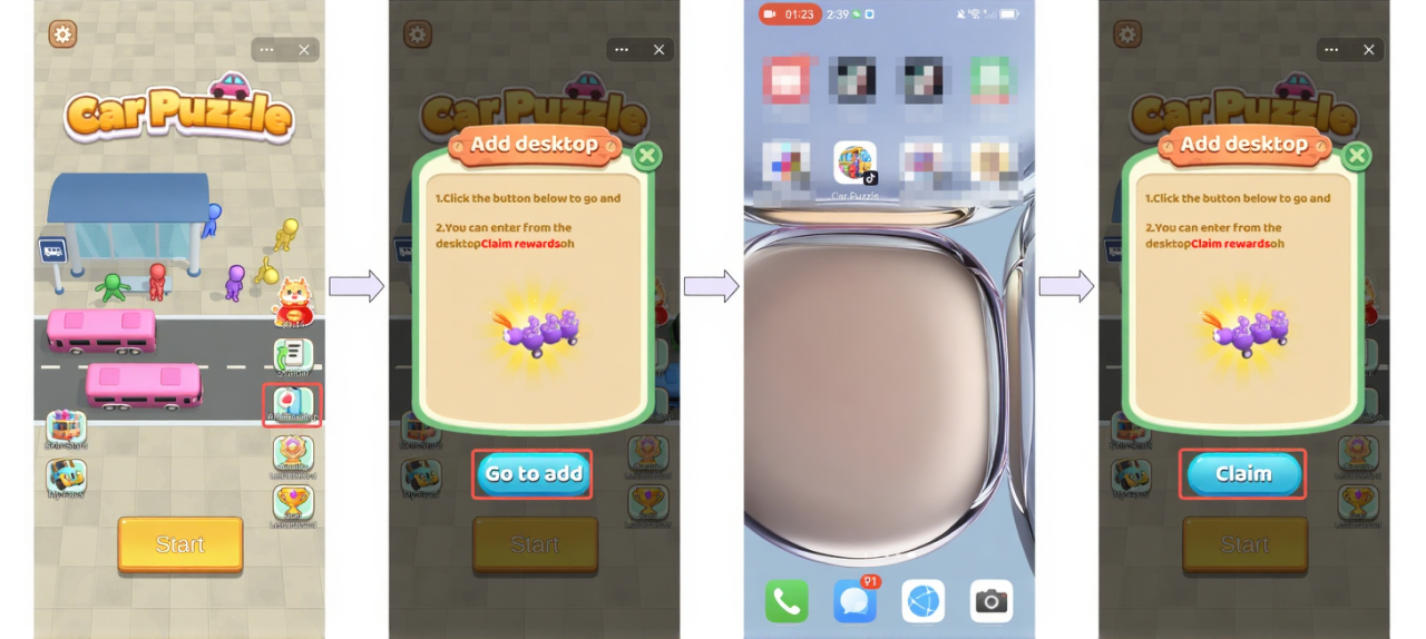 - Other possible directions: Add home screen shortcut guidance to in-game tasks or check-in tasks, with rewards upon completion.