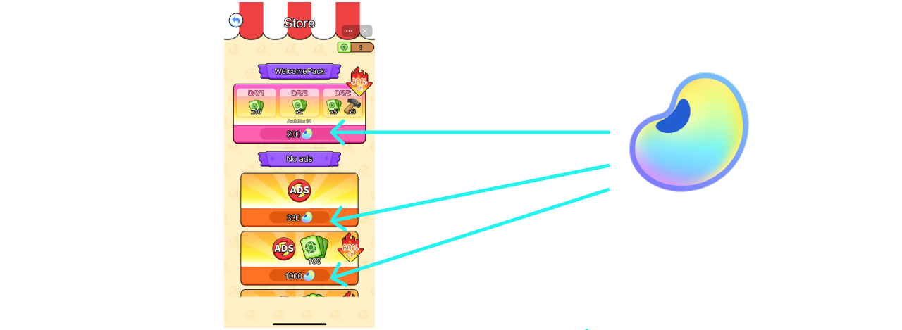 Beans are in-app virtual credits that can be used to unlock or access content within your mini app. Beans can be converted into any virtual currency that's exclusively used within your mini app.