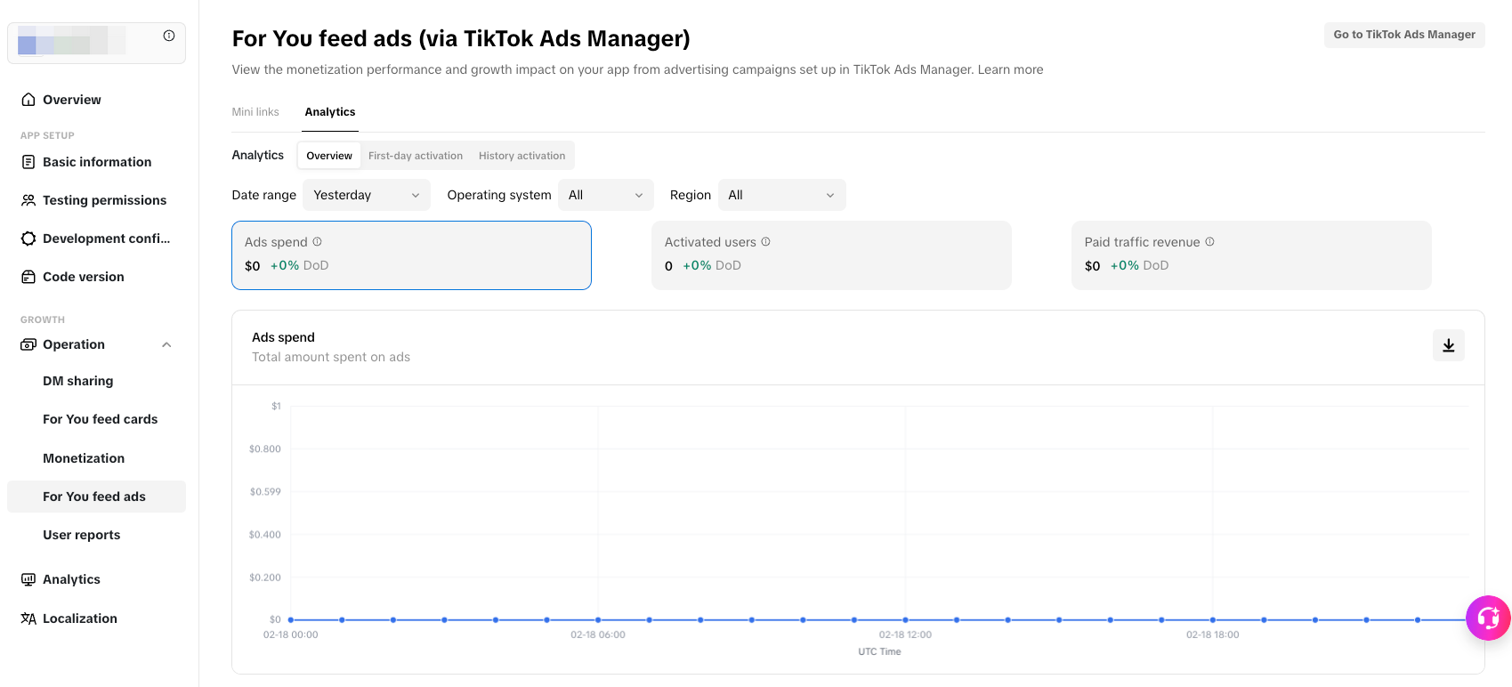 To find For You feed ad analytics on your app page: