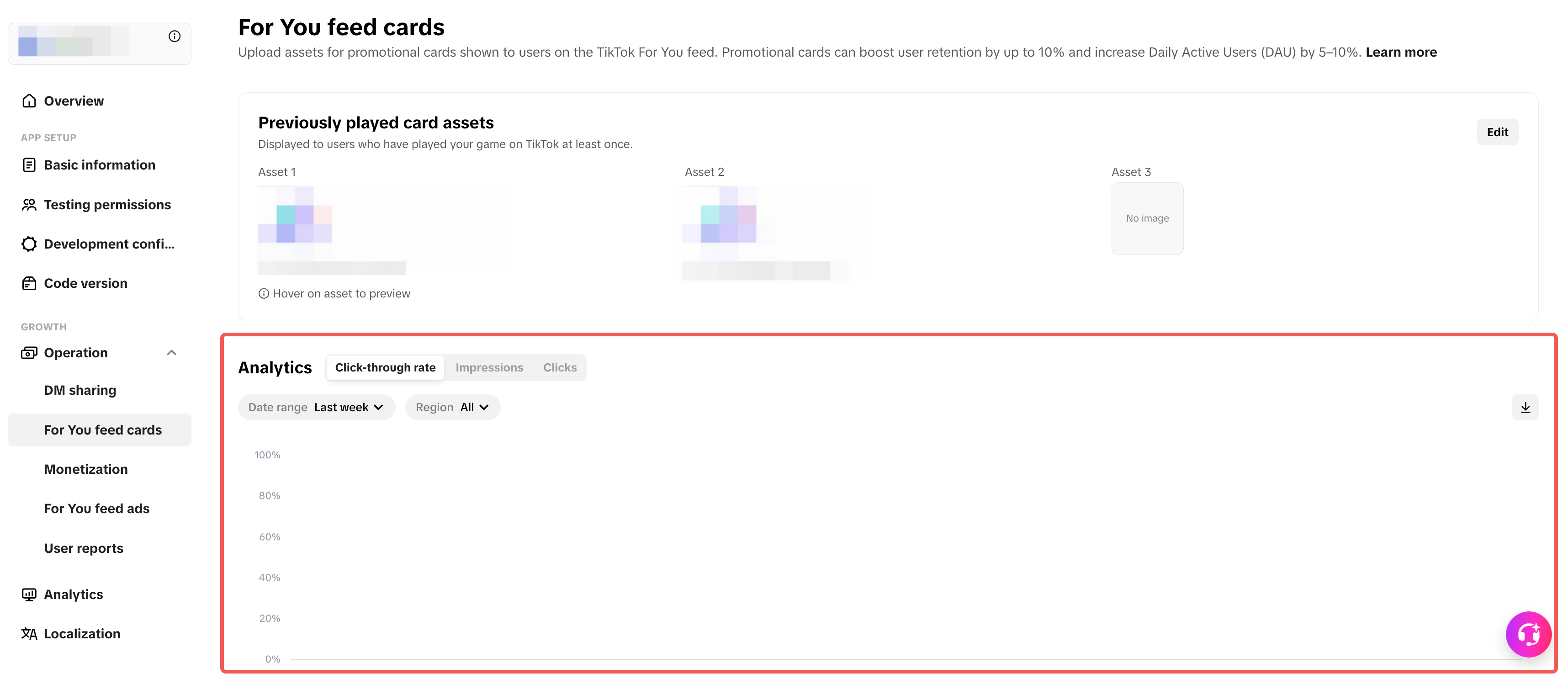 To find For You feed card analytics on your app page, navigate to the For You feed cards page from the side bar, under Promotion.