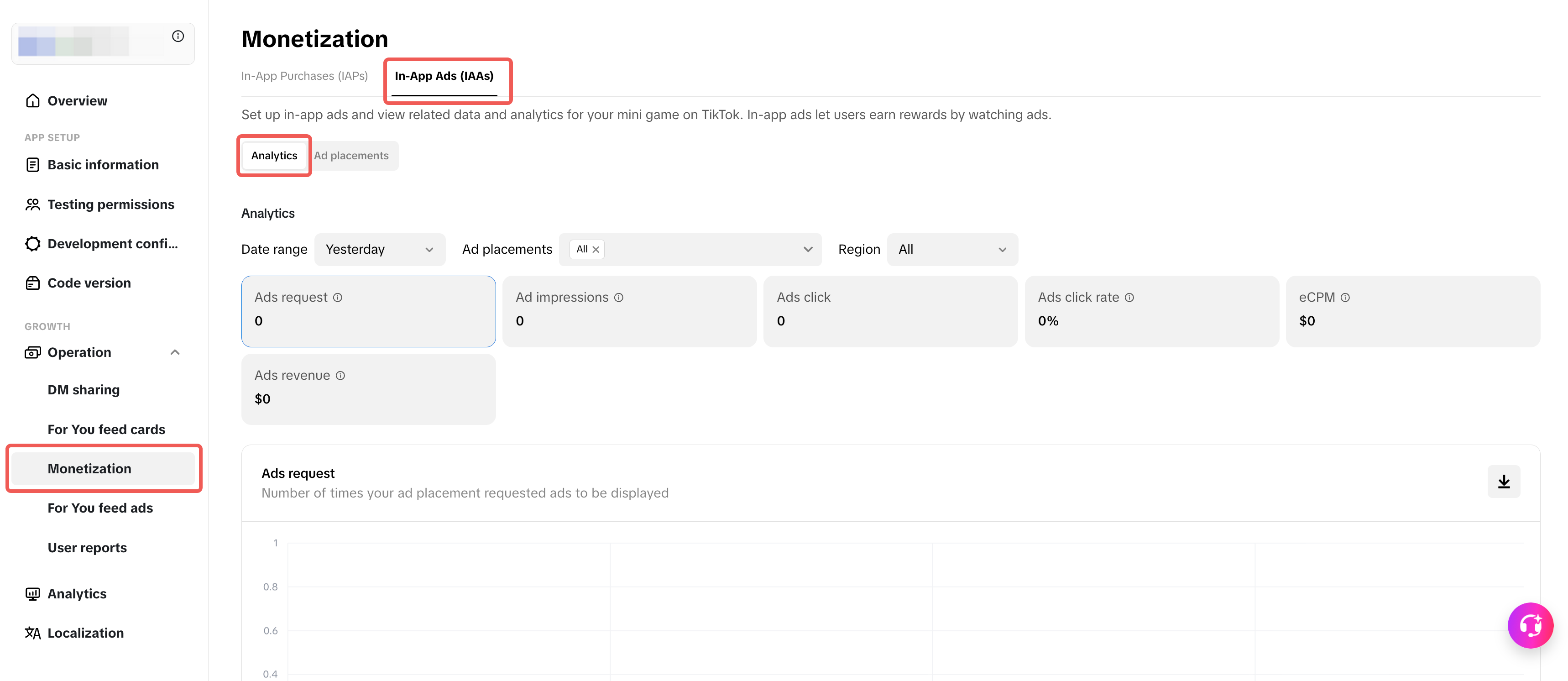 In-App Ads (IAAs) | Monetization page > In-App Ads tab > Analytics toggle | |