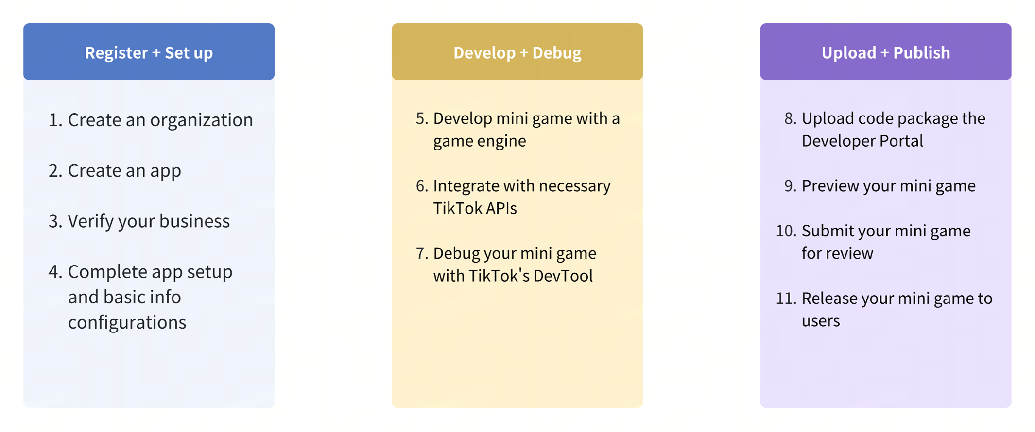 The mini game set up and integration workflow generally follows the steps depicted: