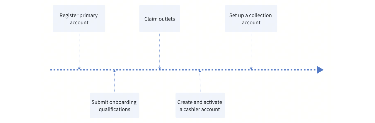 Before you begin merchant operations, you must create and activate cashier accounts for each outlet under your primary Merchant Portal account. These cashier accounts correspond to staff members who can redeem vouchers at each outlet location.