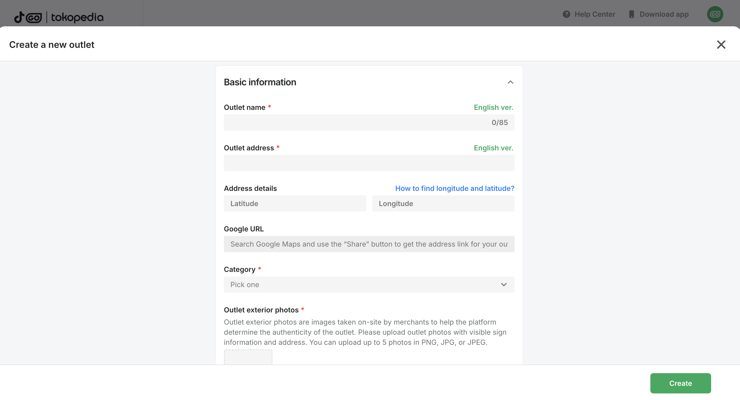 - Fill in the required basic outlet information.