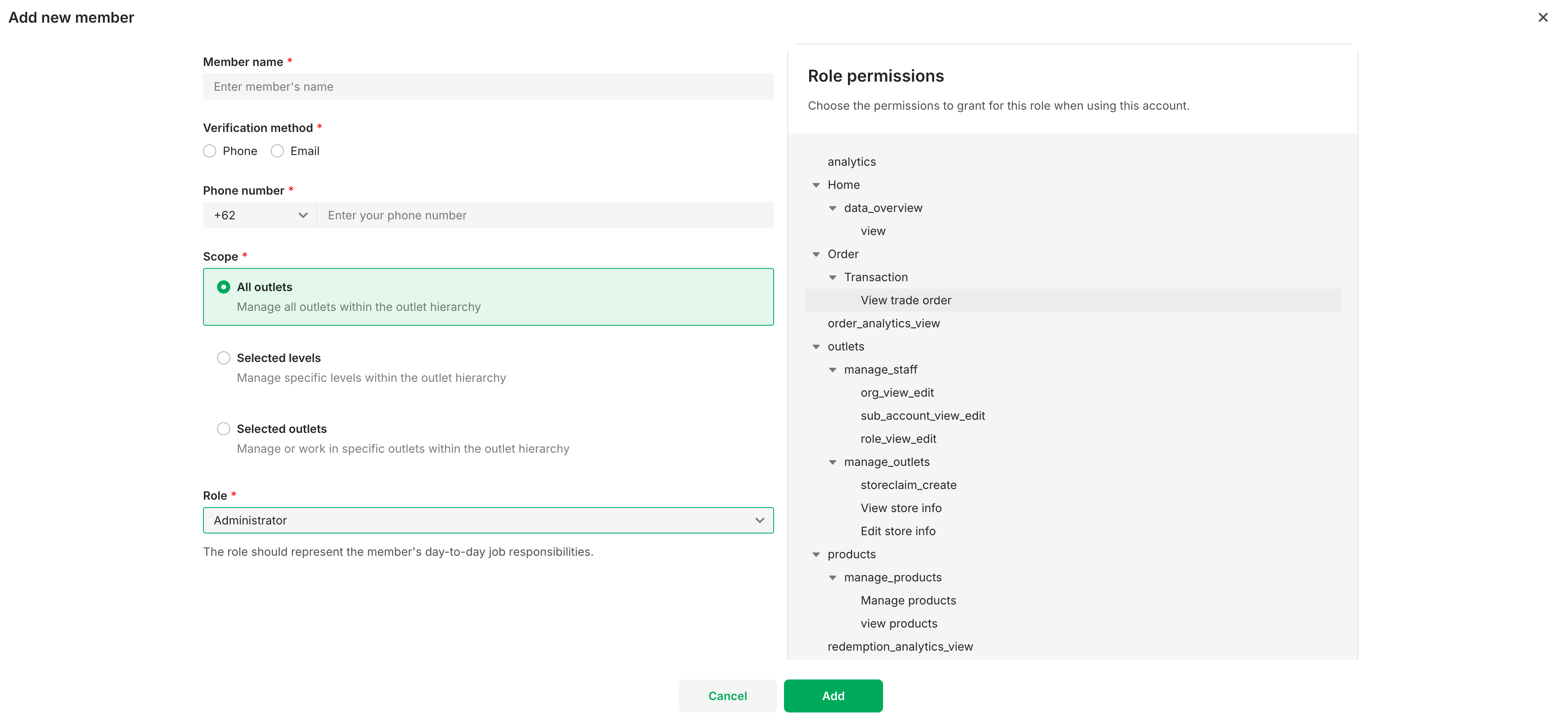 - Fill in the staff member's information and invite them via phone number or email address.