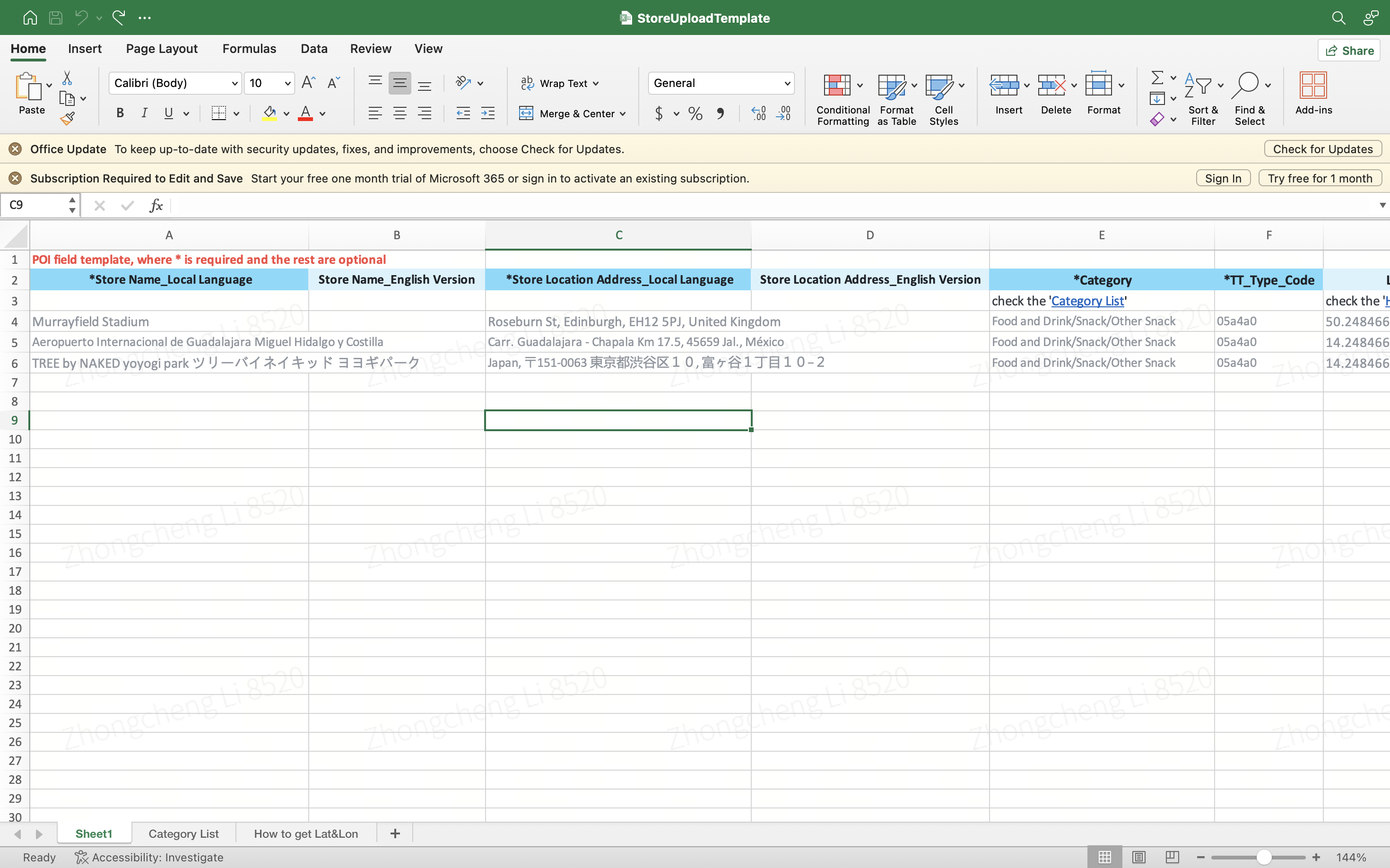 - Download the template and fill in the required information in the spreadsheet.