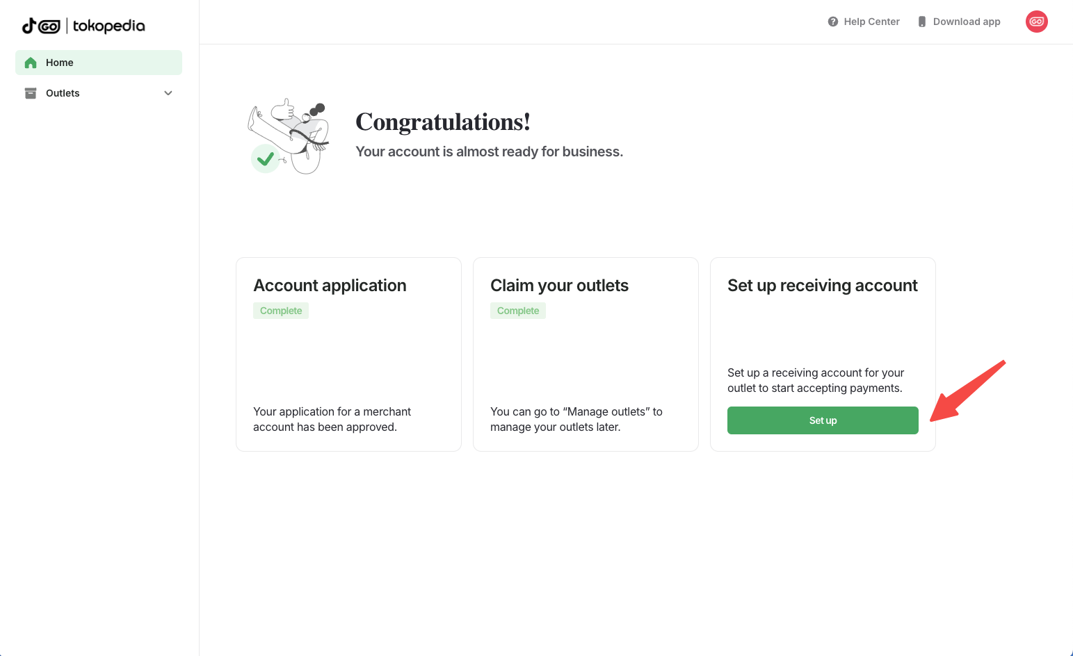 After activation, the cashier needs to download the Tokopedia app and log into their cashier account.