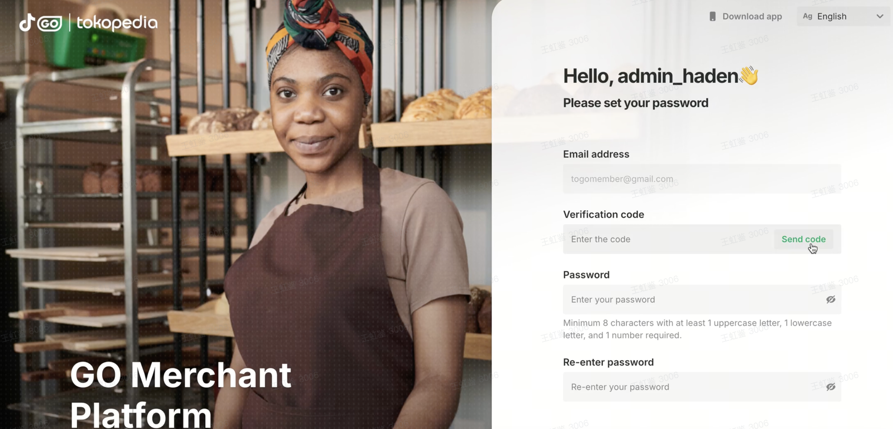 - Visit the Tokopedia Go for Dining website to create a Merchant Portal account. Enter the invitation code when prompted, then click the Submit button.