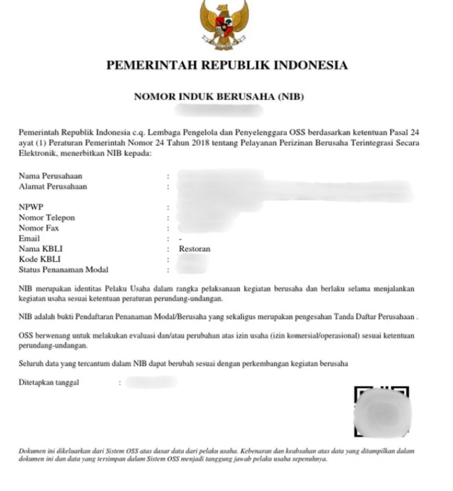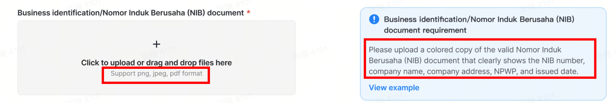 You will be asked to upload a business identification/Nomor Induk Berusaha (NIB) document, as depicted: