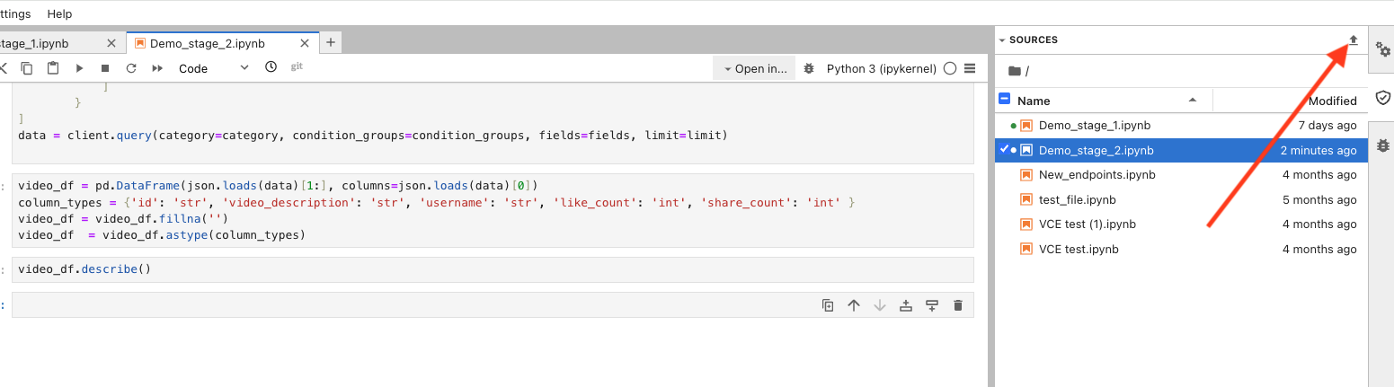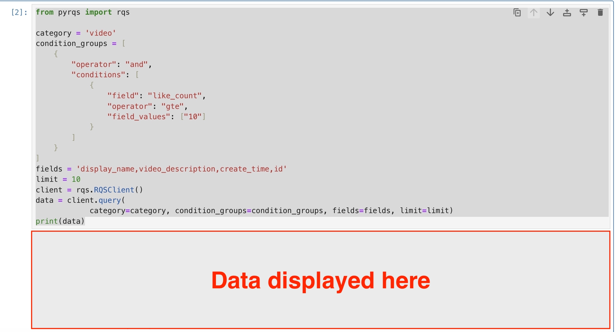 After you have queried the data and understood the metadata structure, you can run a script to analyze all TikTok's public data. Please make sure that the output of your script at this stage does not contain individual-level data.